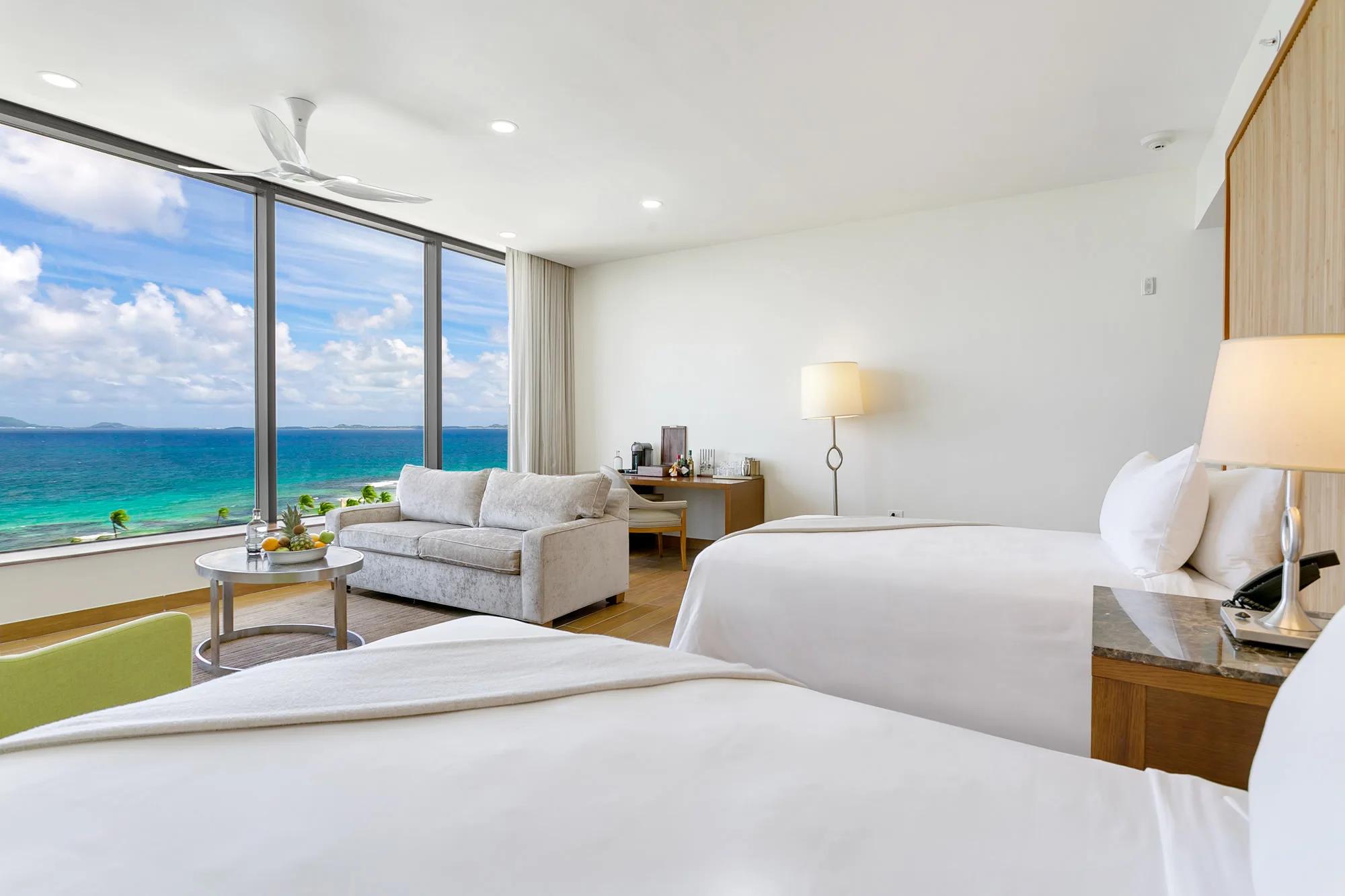 Floor-to-ceiling windows frame the endless blue horizon. Every detail curated to make you feel as though the ocean exists just for you.